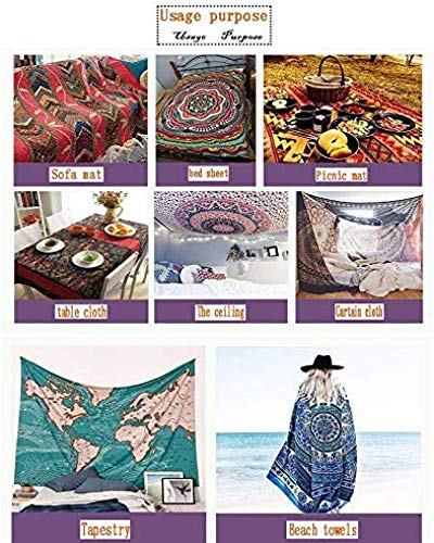- متعدد الاستخدامات - يمكن استخدامه كبساط حائط أو مفرش سرير أو مفرش طاولة أو ديكور للسكن الجامعي أو ملاءة للنزهات أو شال الشاطئ أو وشاح أو بطانية أو مفرش طاولة وما إلى ذلك. يمكن استخدامه بشكل متكرر. ما عليك سوى تعليقها في أي مساحة، وستضيف متعة مثيرة وفريدة من نوعها إلى الغرفة
