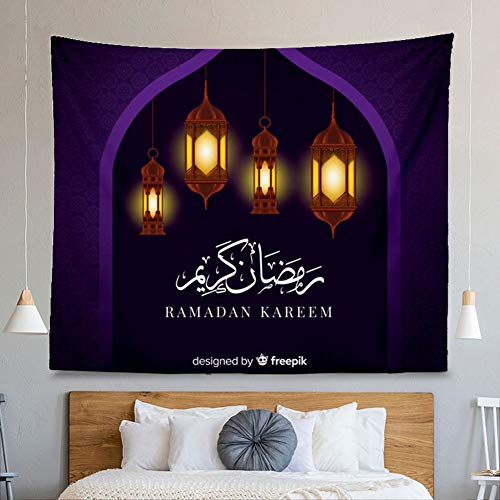 Alexo - مفروشات تعلق علي حائط مصنوعة يدويا بتصميم هلال وفانوس رمضان لعيد المسلمين، ديكور وزينة حائط للحفلات الرمضانية تناسب غرفة النوم وغرفة المعيشة والمنزل والسكن الجامعي (اي، 70×100 سم)