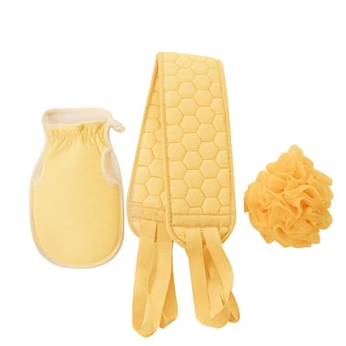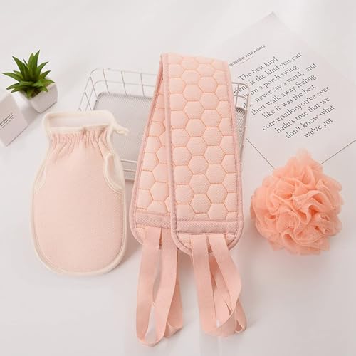 - مجموعة 3 في 1 - فرشاة تقشير الظهر + قفاز ليفة للتقشير + كرة إسفنجية للاستحمام، سهلة التنظيف للظهر والقدمين والكتف وحتى الوجه بشكل كامل.