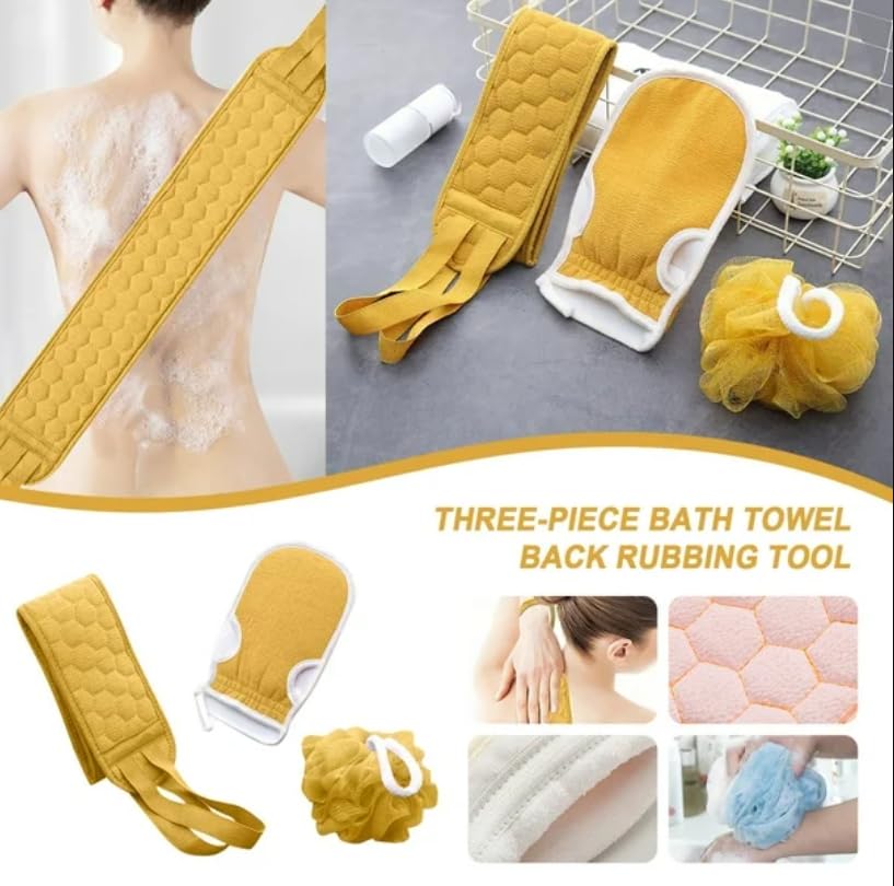 - محتويات العبوة: مجموعة متكاملة من ليفة الظهر وقفاز الاستحمام وكرة الاستحمام الشبكية، لتمنحك عناية شاملة من أعلى الرأس إلى أخمص القدمين.