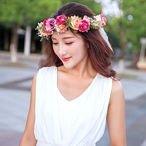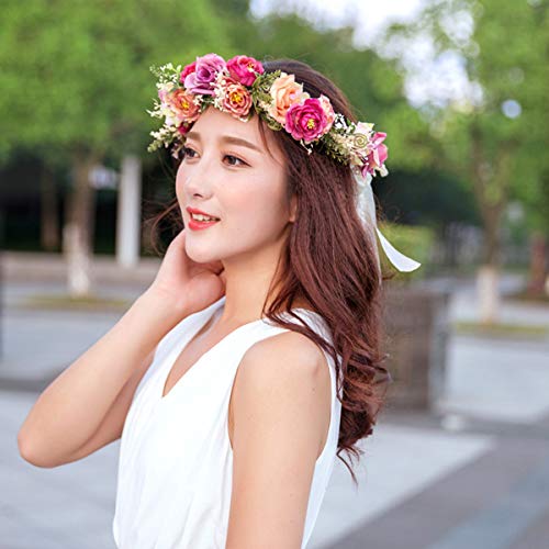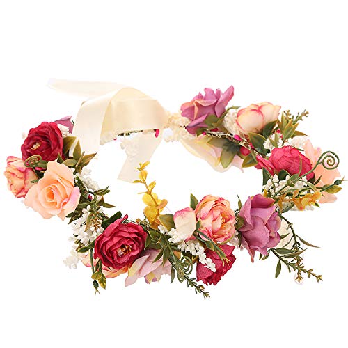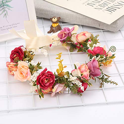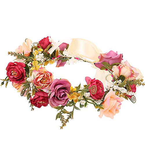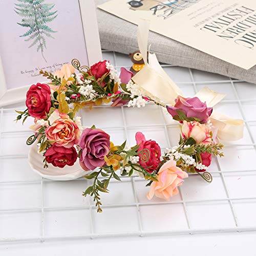 YnimioAOX - شريط راس بتصميم اكليل زهور قابل للتعديل مصنوع يدويا بتصميم هالو مزين بالزهور لحفلات الزفاف والمهرجانات (I11- ملون)
