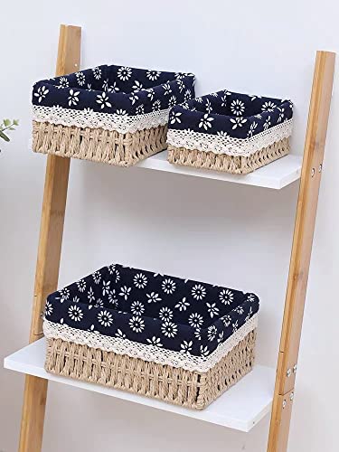 Spaceshoop - سلال تخزين منزلية مصنوعة يدويًا من الخيزران مع بطانة قابلة للغسل لتنظيم والتخزين في المنزل ب 3 أحجام مختلفة