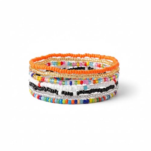 Generic - خلخال خرز يدوي الصنع للنساء، أساور كاحل من خرز زجاجي ملون متعدد الطبقات، سلسلة قدم ويد مرنة، مقاس واحد، 7 قطع