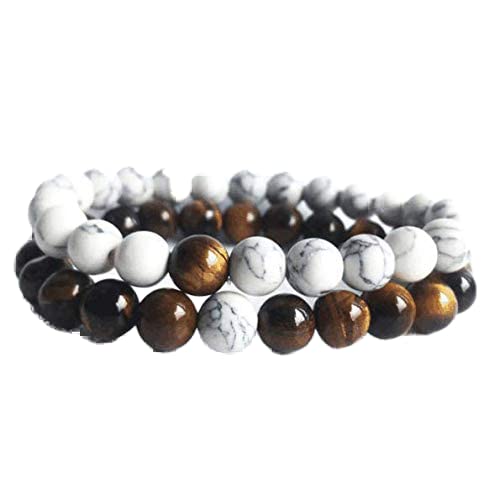 Other - قطعتان من الاساور المزيّنة بالخرز الكثيف، زوج مصنوع يدوياً 8 مم - سوار خرز يدوي ليوم الميلاد وعيد الحب، للجنسين