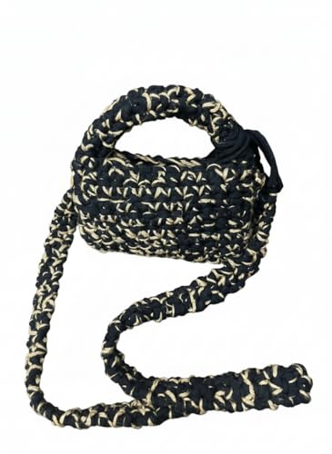 Generic - شنطة يد كروشيه بوهيمية مصنوعة يدويا، خيط قطني اسود وبيج، حزام طويل يمر بالجسم بتصميم عصري للاستخدام اليومي والتسوق