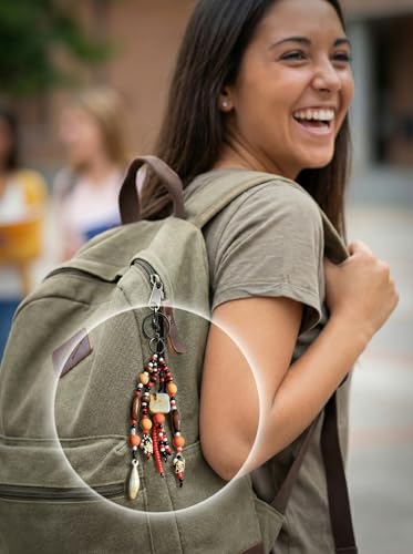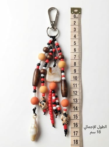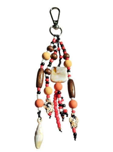 Generic - ميدالية مفاتيح بوهيمية مصنوعة يدوياً بخرز خشبي وصدف طبيعي، تعليقة حقيبة بألوان برتقالي وبني وأحمر، 18 سم