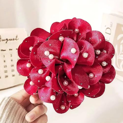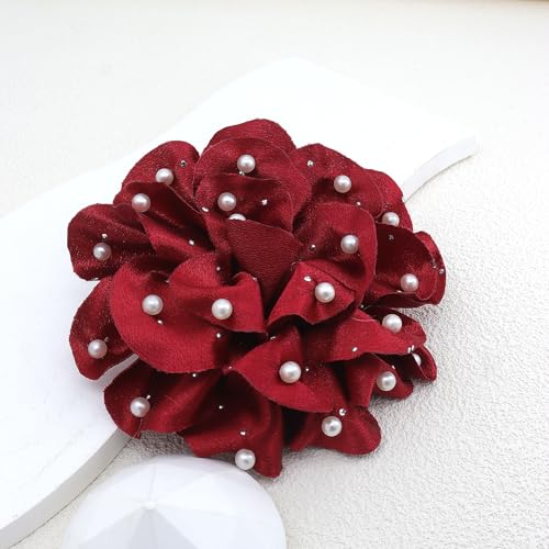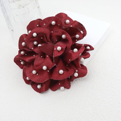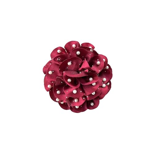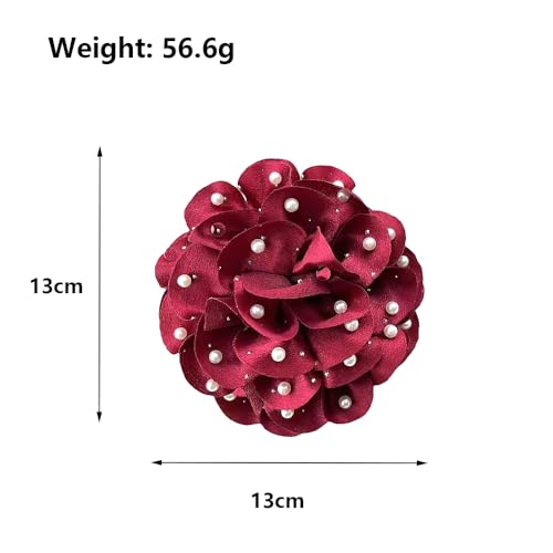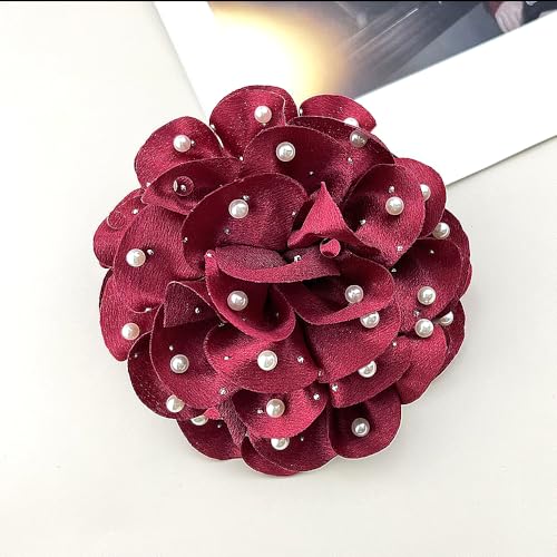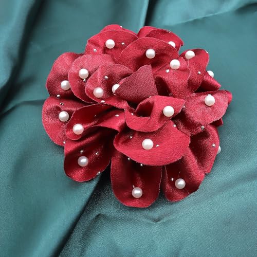 Rrdaily - دبابيس بروش على شكل زهور كبيرة من الشيفون المصنوعة يدويًا للنساء، بتصميم وردة من قماش ساتان متعدد الطبقات، بروشات زهور لدبابيس الياقة، مزينة باللؤلؤ، مناسبة للملابس الحفلات والمجوهرات
