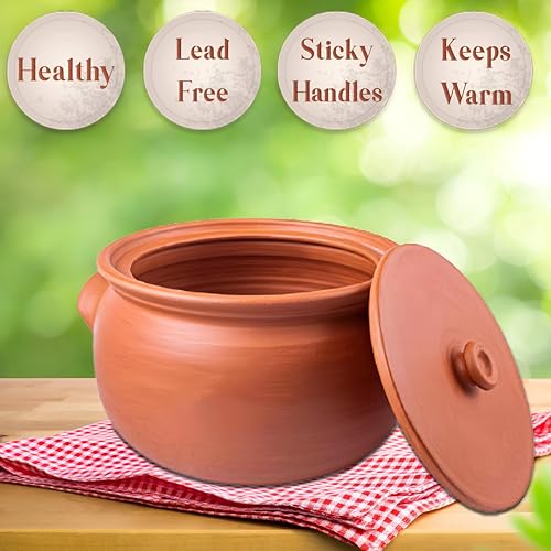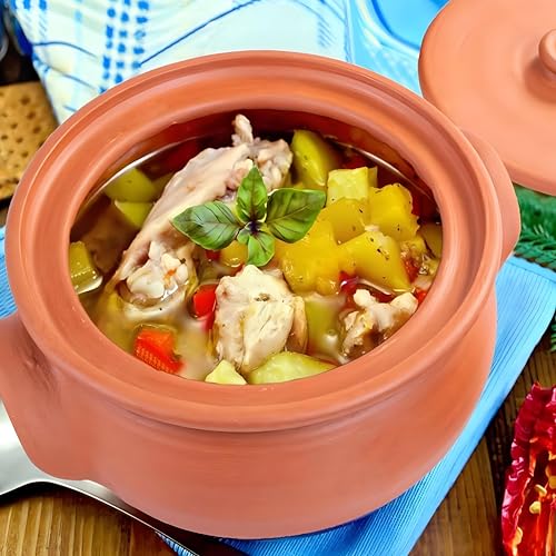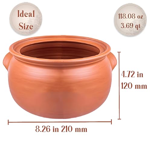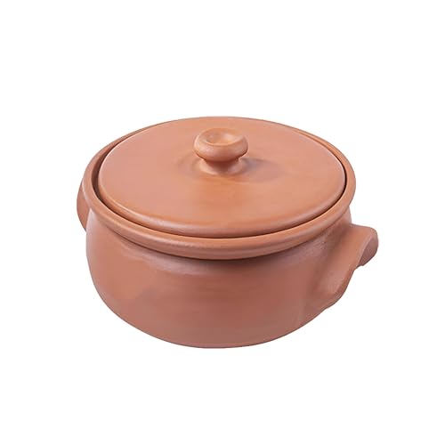 Generic - ادوات طينية مصنوعة يدويا - وعاء ترابي غير سام خال من الرصاص مع غطاء، مثالي للزبادي وطهي الطعام الهندي والكوري والمكسيكي والصيني، نمط صغير وتقليدي