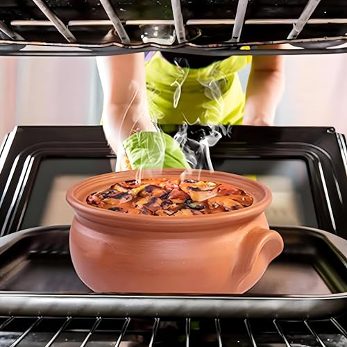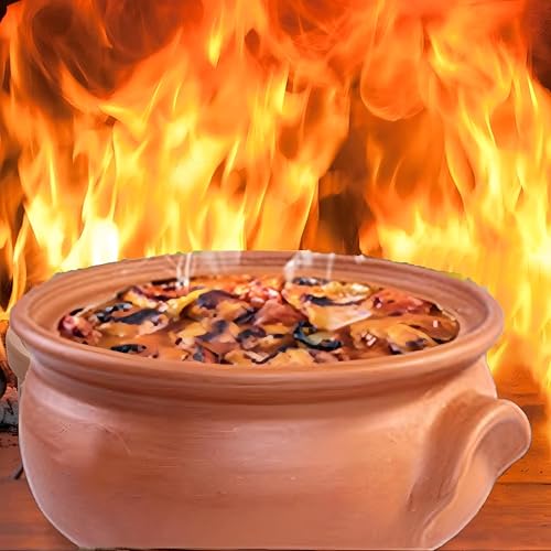 - مصممة بمقابض معززة ومتكاملة، توفر أواني الفخار هذه قبضة آمنة أثناء الطهي والتعامل، مع مقابض مصنوعة من نفس الطين الطبيعي، مما يضمن المتانة وسهولة الاستخدام في كل من الطبخ على الموقد والفرن.