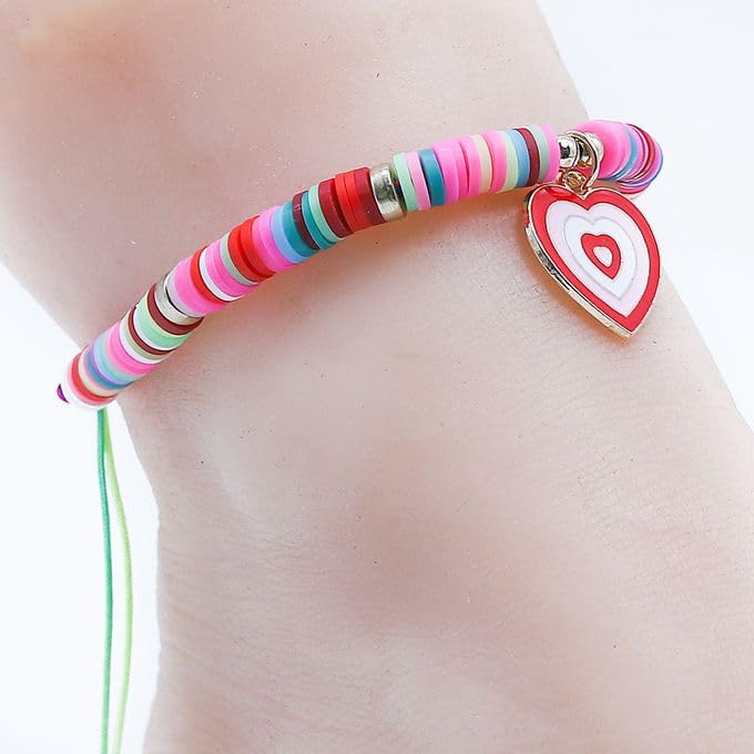 Generic - خلخال مصنوع يدويًا من الخرز البوهيمي الملون مجوهرات راقية للنساء - قلب زهري