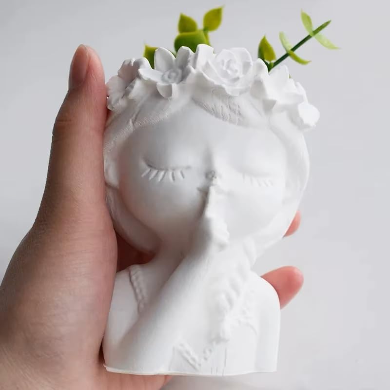 Generic - فازة يدوية الصنع على شكل رأس فتاة من الخزف مع قاعدة واقية من الفقاعات، ارتفاع 10 سم
