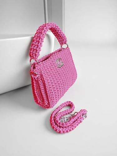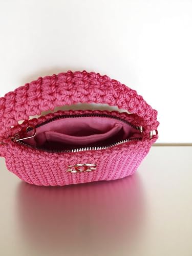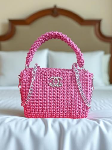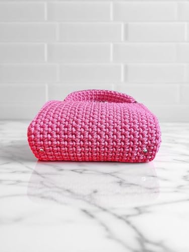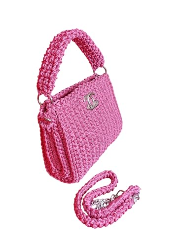 Generic - شنطة يد كروشيه يدوية الصنع، فوشيا، عرض 21 سم، ارتفاع 19 سم، عمق 7.5 سم، احزمة مزدوجة مع سلسلة