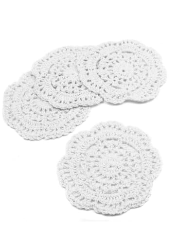 generic - مجموعة قواعد اكواب دائرية مصنوعة يدويا من الدانتيل والكروشيه مكونة من 4 قطع، مفارش مشروبات مزخرفة لحماية الطاولة، مناسبة للاستخدام اليومي في المنزل وطاولة القهوة