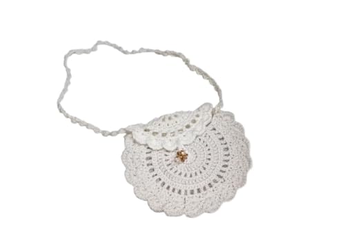 Generic - شنطة كروشيه صغيرة مصنوعة يدويًا من القطن الأبيض بنمط زهور