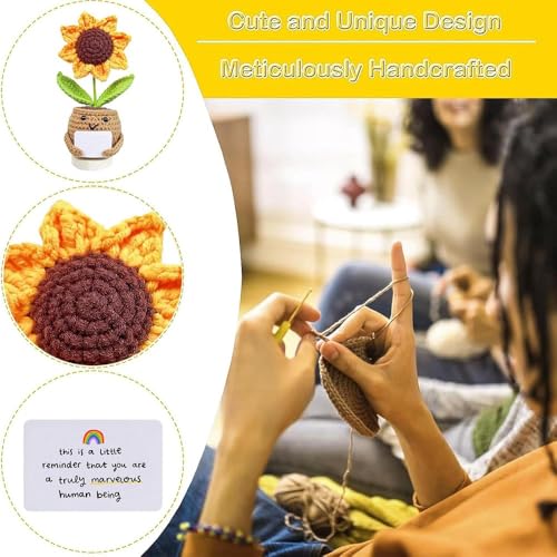 - 【🎨 صناعة كروشيه يدوية】كل زهرة عباد الشمس محبوكة يدويًا بشكل فريد بخيوط ناعمة، مما يعرض حرفية رائعة. البتلات المنسوجة والتفاصيل النابضة بالحياة تجعلها باقة صناعية ساحرة - لا يوجد اثنتان متطابقتان، مما يضيف لمسة شخصية إلى مساحتك. مثالية لأولئك الذين يقدرون الفن اليدوي.