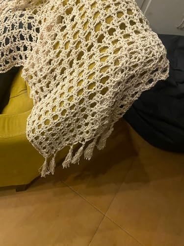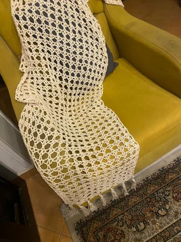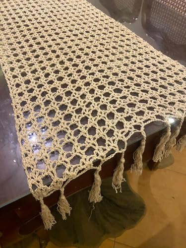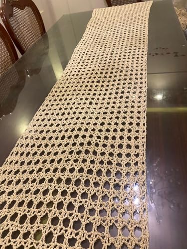 Generic - مفرش طاولة كروشيه يدوي الصنع، دانتيل قطني بيج عتيق، بنمط مخرم، ديكور طاولة طعام _ مقاس 55 * 250 سم