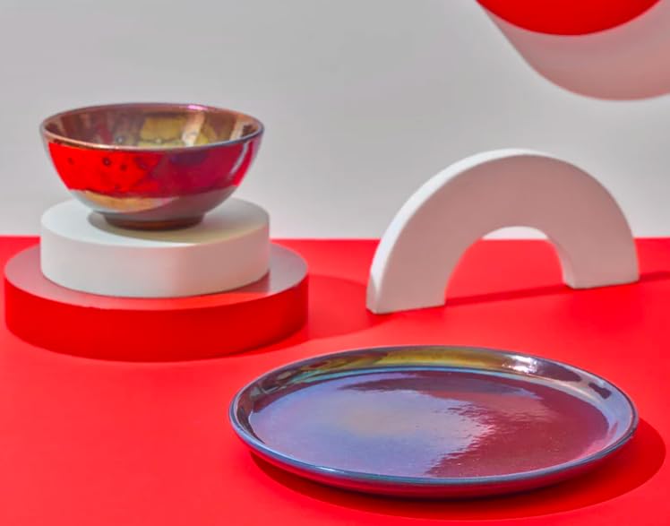 - مجموعة أدوات مائدة مصنوعة يدويًا: تتضمن هذه المجموعة المصنوعة يدويًا طبقين (قطر 27 سم) ووعاء واحد (13 سم)، يتميز كل منهما بلمسة نهائية فريدة من نوعها لتغيير اللون تخلق اختلافات بصرية مذهلة