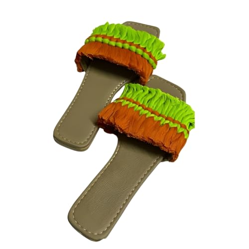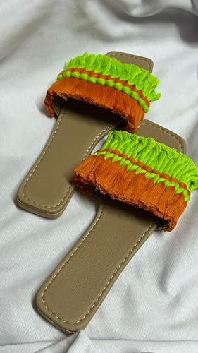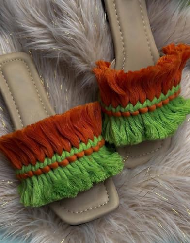 شبشب فاخر مصنوع يدويا للنساء باللونين الاحمر والاخضر، مقاس 40