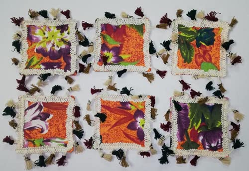 Generic - مجموعة من6 قاعدة كوب رائعة صناعة يدوية من القماش القطني الملون المزينة بشراشيب كوستر من اكسسوارات المطبخ و أواني الطعام و ديكورات المنزل تصلح مع أكواب و أدوات الشرب