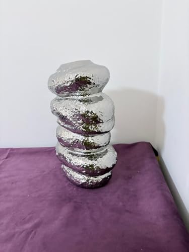 Generic - فازة زجاج مصنوعة يدويًا لديكور المنزل، زهرية بنمط مكدس ونقشة بارزة بلون أرجواني وشفاف