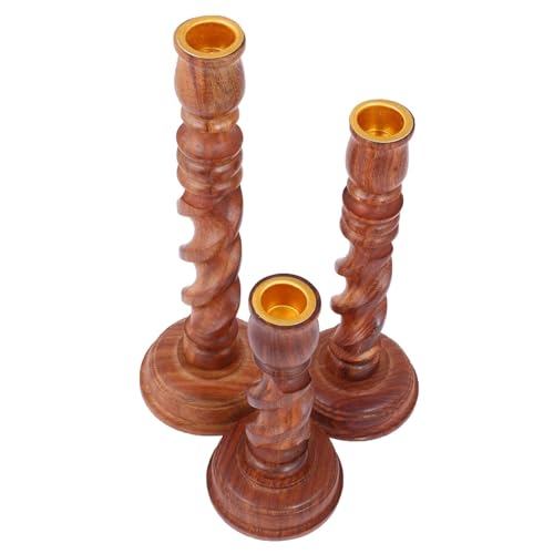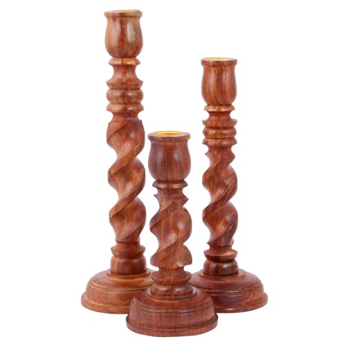 Generic - طقم شمعدان خشب شيشام هندي يدوي 3 قطع بحفر زخرفي فاخر لتزيين المنزل والطاولات والصالونات والمداخل لإضافة لمسة ديكور راقية وفاخرة