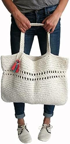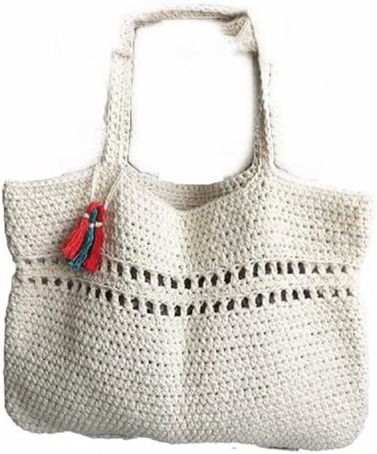 Generic - شنطة يد كاجوال كبيرة الحجم 42 سم مصنوعة يدويا - اوف وايت