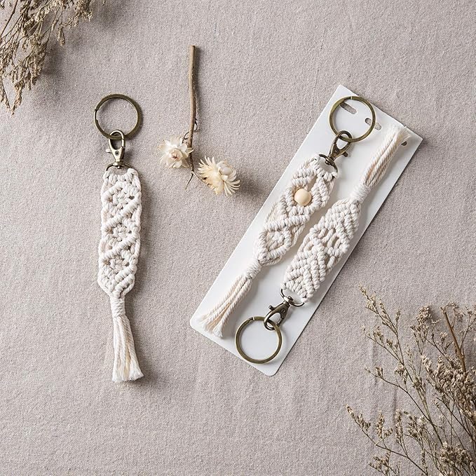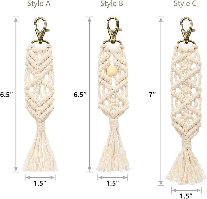 Generic - سلسلة مفاتيح مكرمية مصنوعة يدويًا، حبل من القطن الطبيعي، ديكور حائط بنمط بوهو، 3 تصميمات، مشبك برونزي، طول 6.5-7 انش
