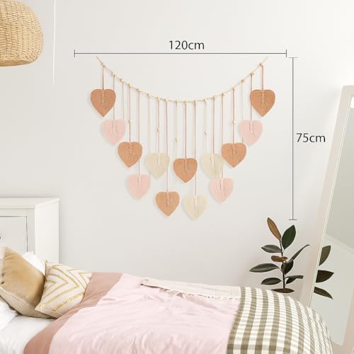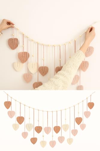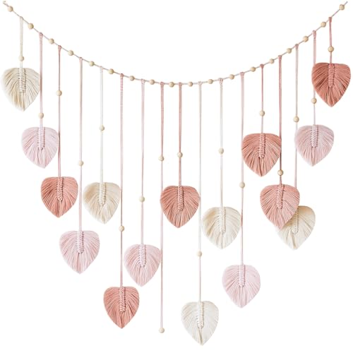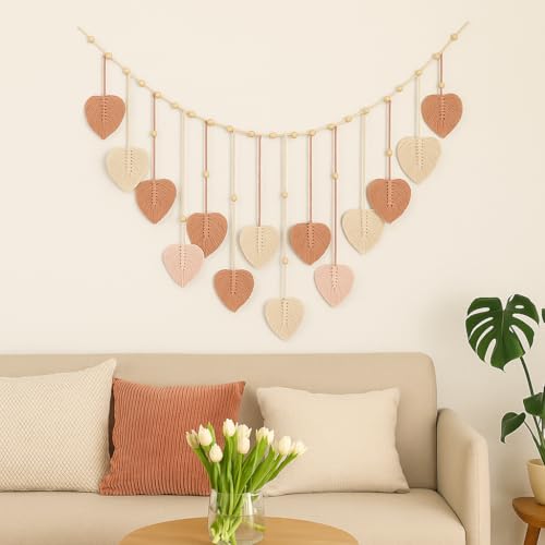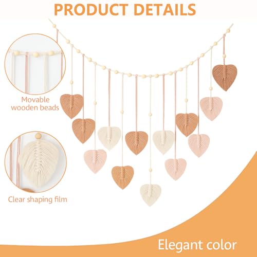 Blpoxars - مكرمية لديكور الحائط مصنوعة يدويًا من خيوط على شكل ورق شجر، نسيج بوهيمي بلمسات على شكل ريش لغرفة المعيشة والشقة