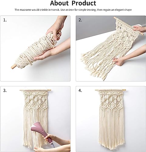 - خامات ممتازة: مصنوعة من حبال قطنية عالية الجودة مع قضيب خشبي متين، مما يجعلها قطعة جدارية متينة وراقية.