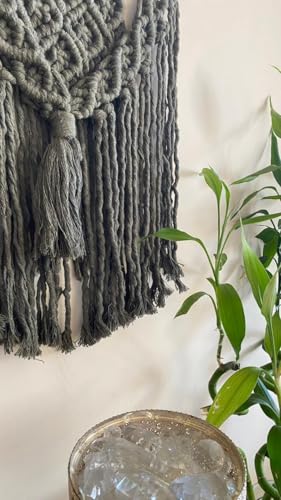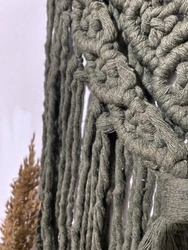 - تصميم مصنوع يدويًا: تعليقة جدارية مكرمية جميلة تتميز بنمط ماسي معقد، منسوجة يدويًا بدقة باستخدام حبل قطني رمادي فاخر للحصول على جمالية بوهيمية مذهلة.