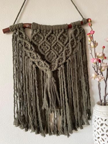 Generic - لوحة جدارية مكرمية منسوجة يدوياً، تعليقة بوهيمية لغرفة المعيشة بتصميم ماسي، لون رمادي، حجم متوسط، قطعة واحدة