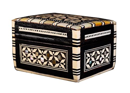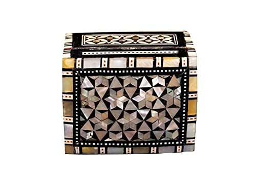 Other - صندوق مجوهرات مصنوع من الخشب مطعم بالصدف الطبيعي، متعدد الألوان