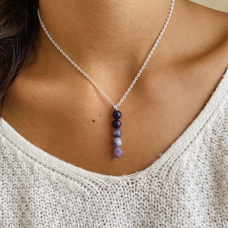 Generic - عقد مصنوع يدويا من حجر الجمشت الطبيعي - مجوهرات ستيل قابلة للتعديل - اللؤلؤ الفاخر للكبار الجنسين
