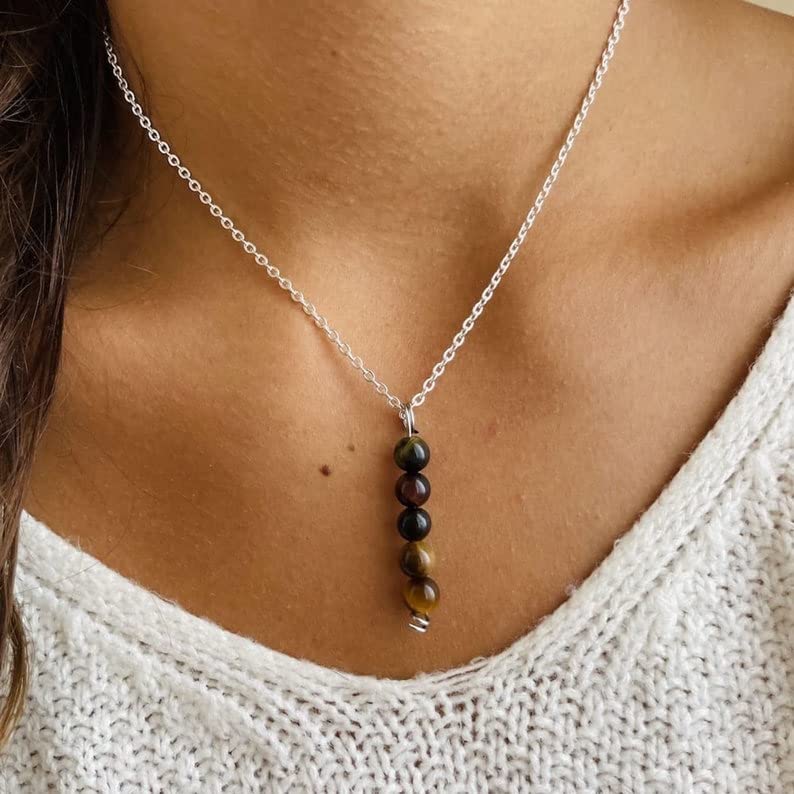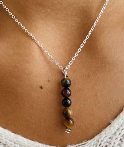 Generic - قلادة عين النمر الطبيعية مصنوعة يدويا - مجوهرات ستيل قابلة للتعديل - عقد من اللؤلؤ الفاخر، للكبار من الجنسين