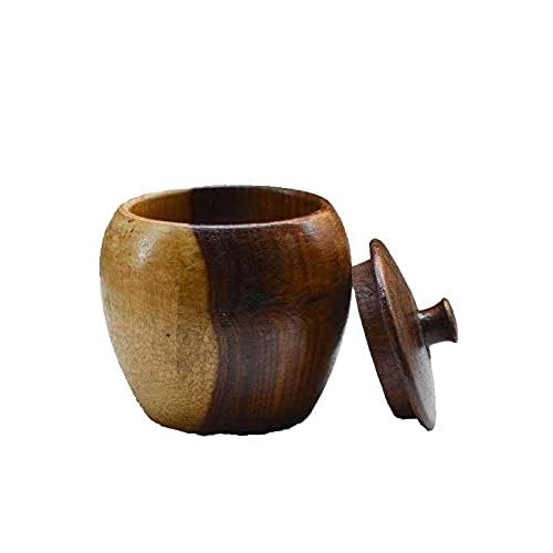 Egypt Antiques - علبة توابل مع غطاء مصنوعة من خشب السرسوع يدويا