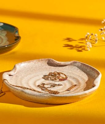 - وظيفة متعددة الأغراض: طبق متعدد الاستخدامات مثالي لتنظيم المجوهرات أو الخواتم أو الأقراط أو المفاتيح أو العملات المعدنية أو غيرها من الأشياء الصغيرة؛ يسمح السيراميك الآمن على الطعام باستخدامه كطبق حلي أو ديكور لالتقاط كل شيء