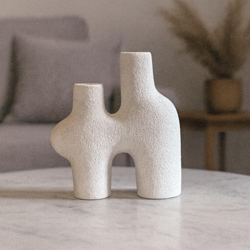 Generic - مزهرية فخار مصنوعة يدويا، ابيض، عرض 19 × ارتفاع 21، مزهرية عصرية وفنية مصنوعة يدويا لمحبي اللون الابيض. شكلها الفريد ولمسة نهائية مزخرفة تجعلها قطعة مميزة في أي مساحة