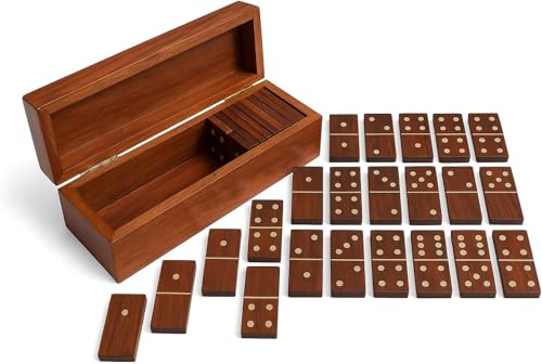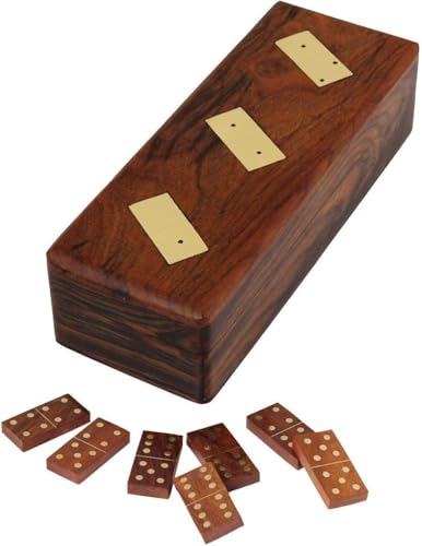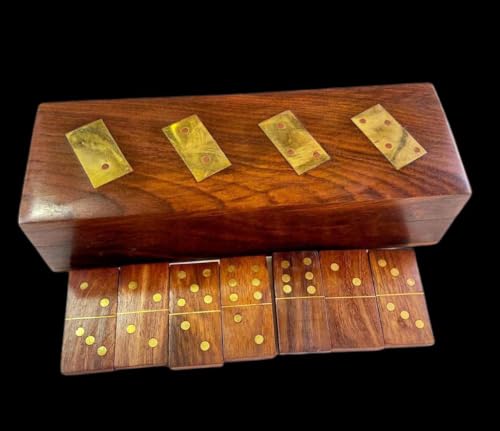 Generic - طقم دومينو هاند ميد فاخر من خشب الشيشام المطعم بالنحاس مع صندوق تخزين أنيق لتجربة لعب راقية ولمسة ديكور كلاسيك