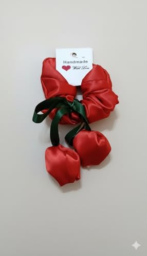 Generic - ربطة شعر مصنوعة يدوياً، أحمر وأخضر، بتصميم ورد، من الساتان