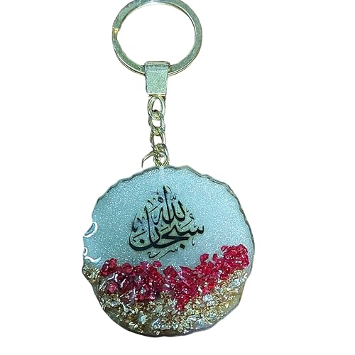 Generic - ميدالية مفاتيح ريزن إيبوكسي مصنوعة يدوياً، ميدالية "سبحان الله" بتصميم فريد مزينة بأحجار لامعة، مثالية كهدية تذكارية أو إكسسوار شخصي.