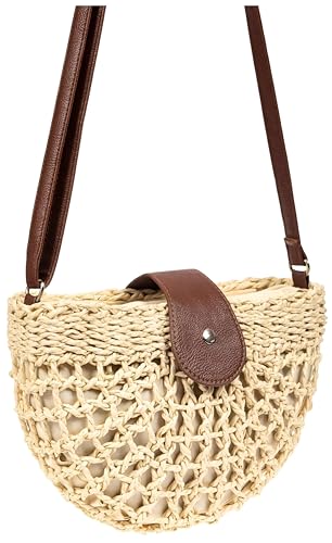 Generic - شنطة شبه دائرية مصنوعة يدويا مع سحاب للاغلاق وحزام جلدي للنزهات الصيفية النسيجية