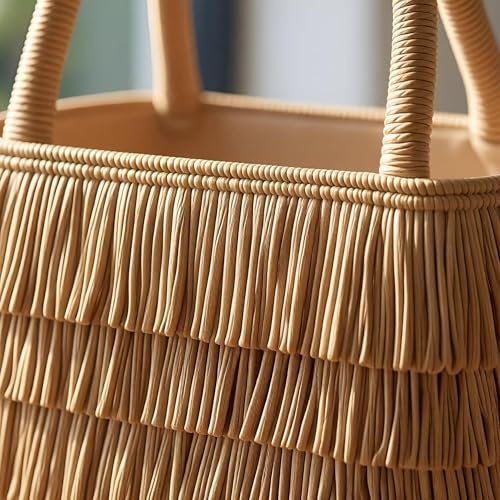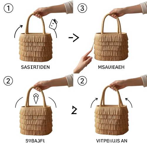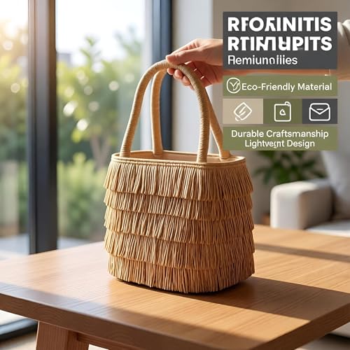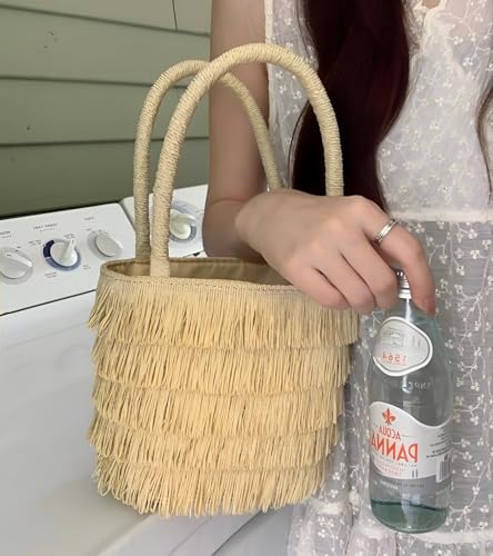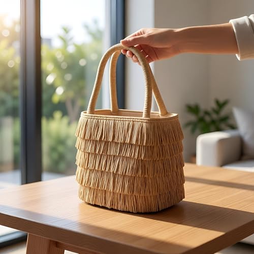 Generic - شنطة يد منسوجة يدويا من القش للنساء - محفظة انيقة منسوجة على الطراز الفرنسي مع حزام مضفر، مثالية للنزهات الصيفية والعطلات الشاطئية