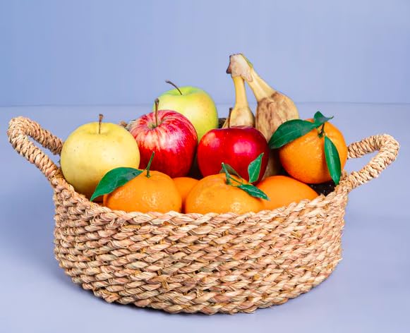 Generic - سلة سويت راش مصنوعة يدويا مع مقابض، سلة تخزين منسوجة طبيعية، عرض 38 سم × ارتفاع 7 سم، نمط ريفي مصري مجفف راش