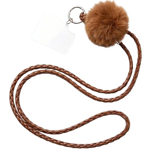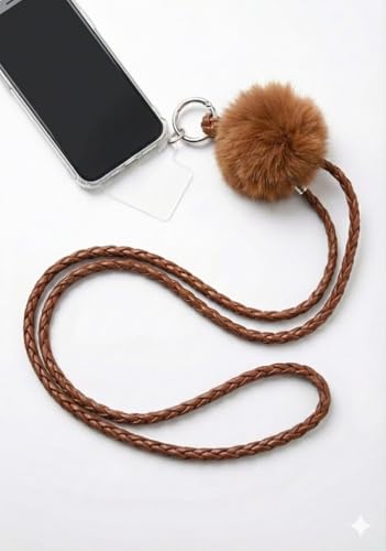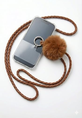 Generic - حبل تعليق عالمي للموبايل مصنوع يدويا بتصميم أنيق مزين بالخرز متوافق مع جميع الموبايلات، جلد بني