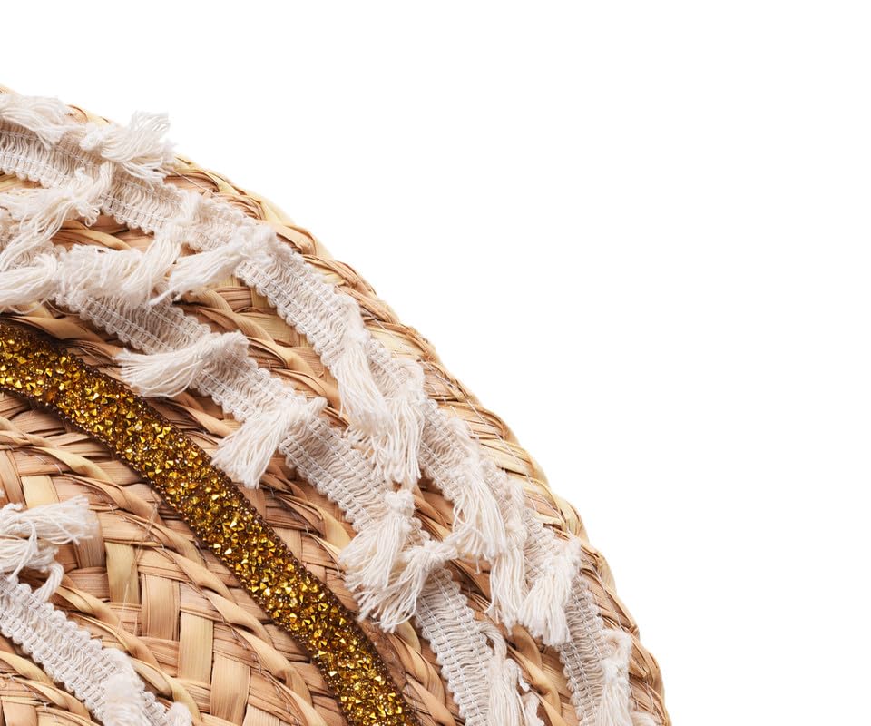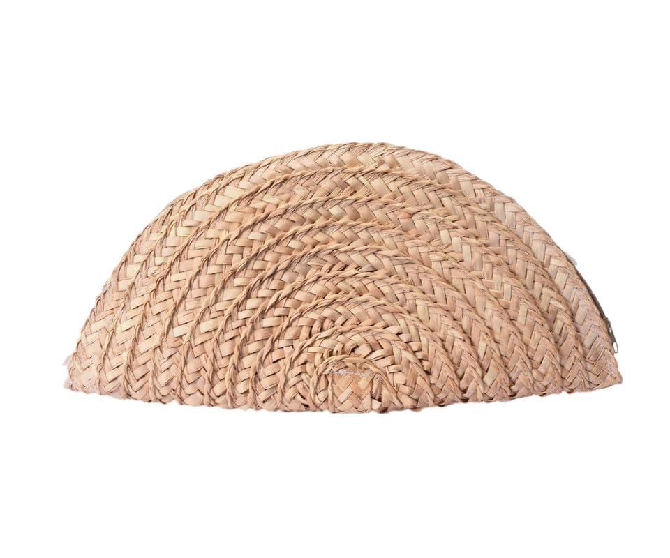 Nubia Egypt - شنطة يد نسائية شبه دائرية مصنوعة يدويا من الخوص مع سحاب، اكسسوارات قطنية مطرزة بلون ذهبي