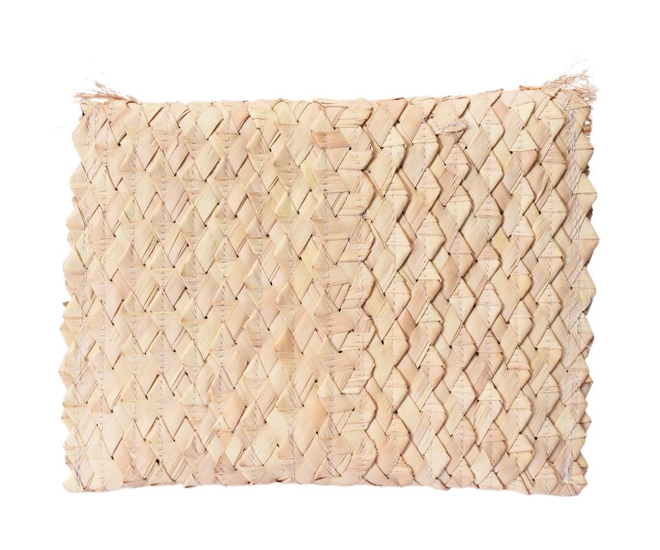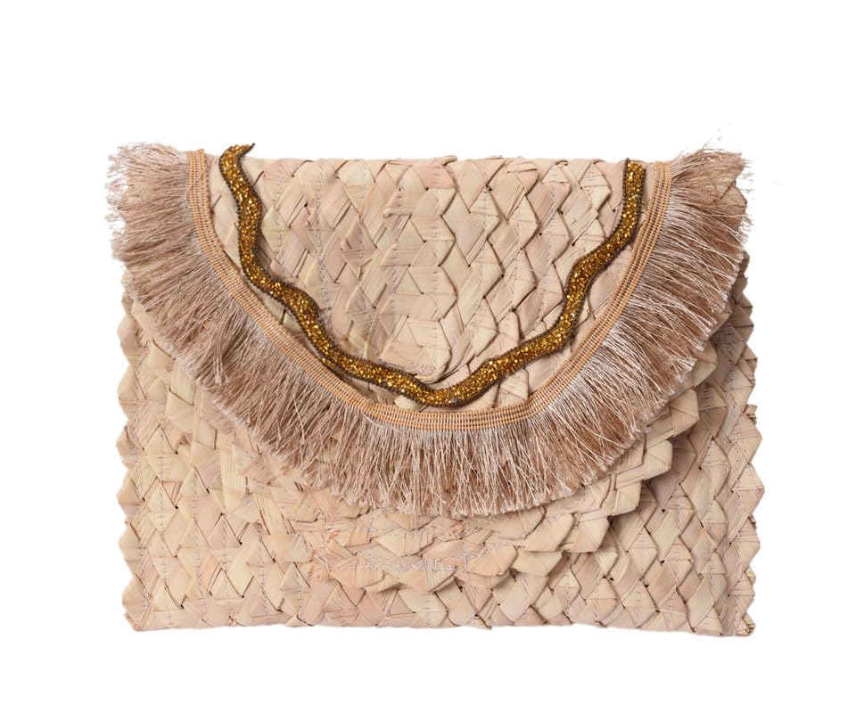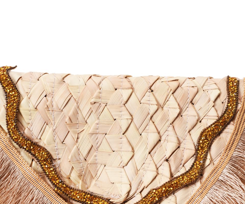 Nubia Egypt - حقيبة يد نسائية مربعة مصنوعة يدويا من الخوص مع اغلاق لاصق ومطرزة باللون الذهبي مع اكسسوار قطني بلون ذهبي