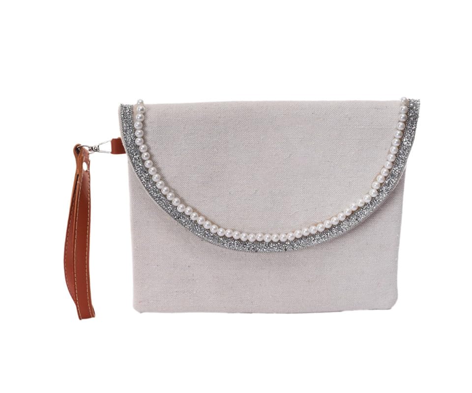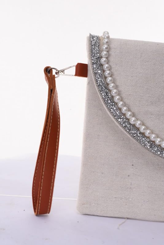 Nubia Egypt - شنطة يد نسائية مصنوعة يدويا من الكتان مع سحاب واغلاق كبسولة، مطرزة باللؤلؤ واحجار الراين الفضية