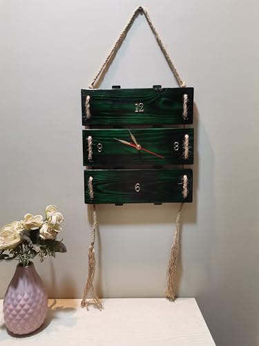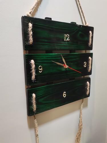 Generic - ساعة حائط خشب صناعة يدوية، اخضر، تناظري