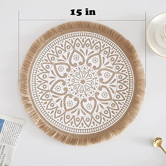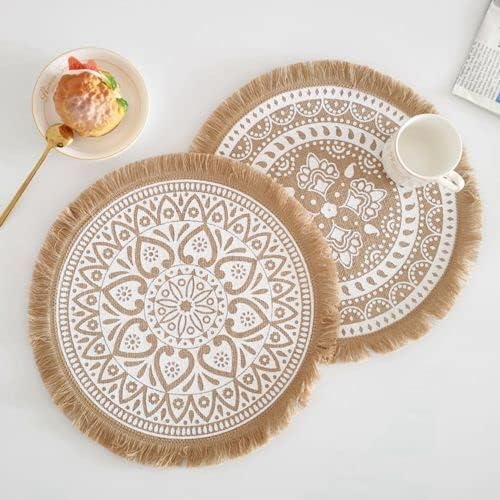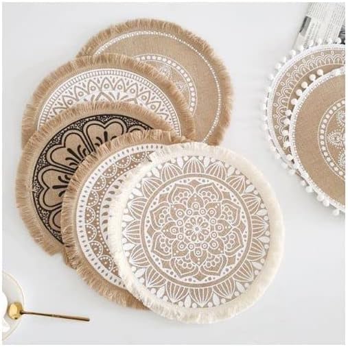 Generic - مفارش مضفرة دائرية منسوجة يدويا من الجوت الطبيعي، مفارش قاعدة اكواب مقاومة للحرارة وغير قابلة للانزلاق لترابيزة الطعام (ابيض وبني)