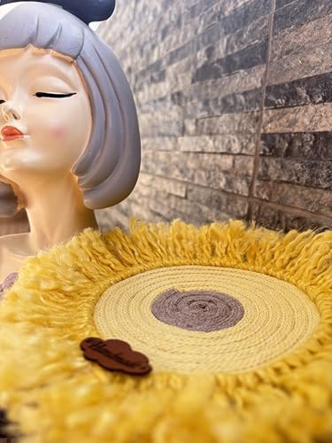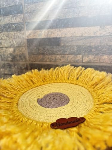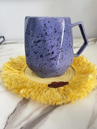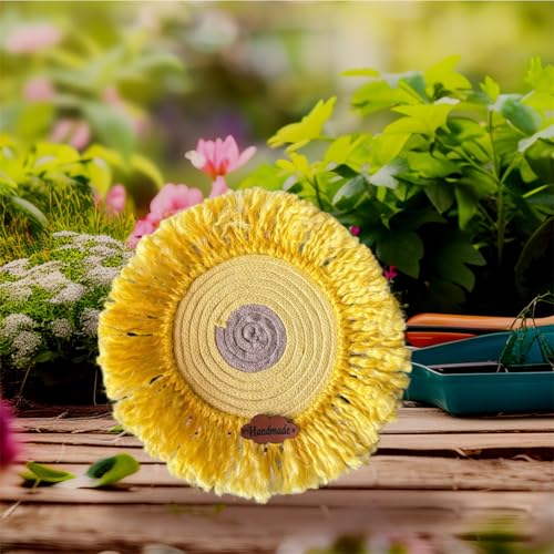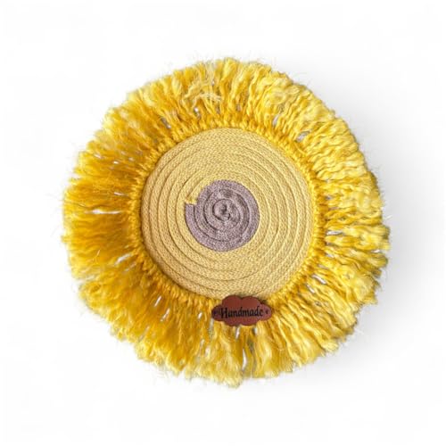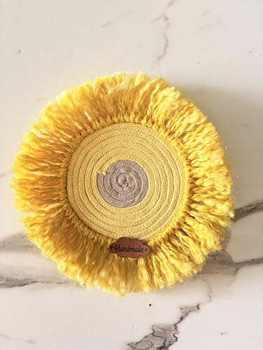 Generic - قاعدة اكواب منسوجة يدويا بلون اصفر مع شراشيب - مفرش طاولة بنمط بوهو ريفي دائري للاكواب والنظارات وديكور المنزل - قاعدة اكواب بتصميم معجزات